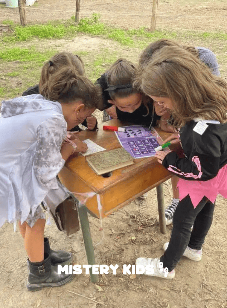 - Acertijos y enigmas: retos de lógica y observación pensados para que los chicos resuelvan en equipo.